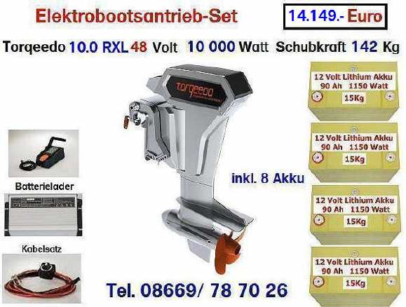 Torqeedo Unterwasser arbeitende Elektrobootsantriebe mit Fernbedienung mit 10.000 Watt bzw. mit der vergleichbarer Leistung eines 5 - 20 PS Benzin-Motors